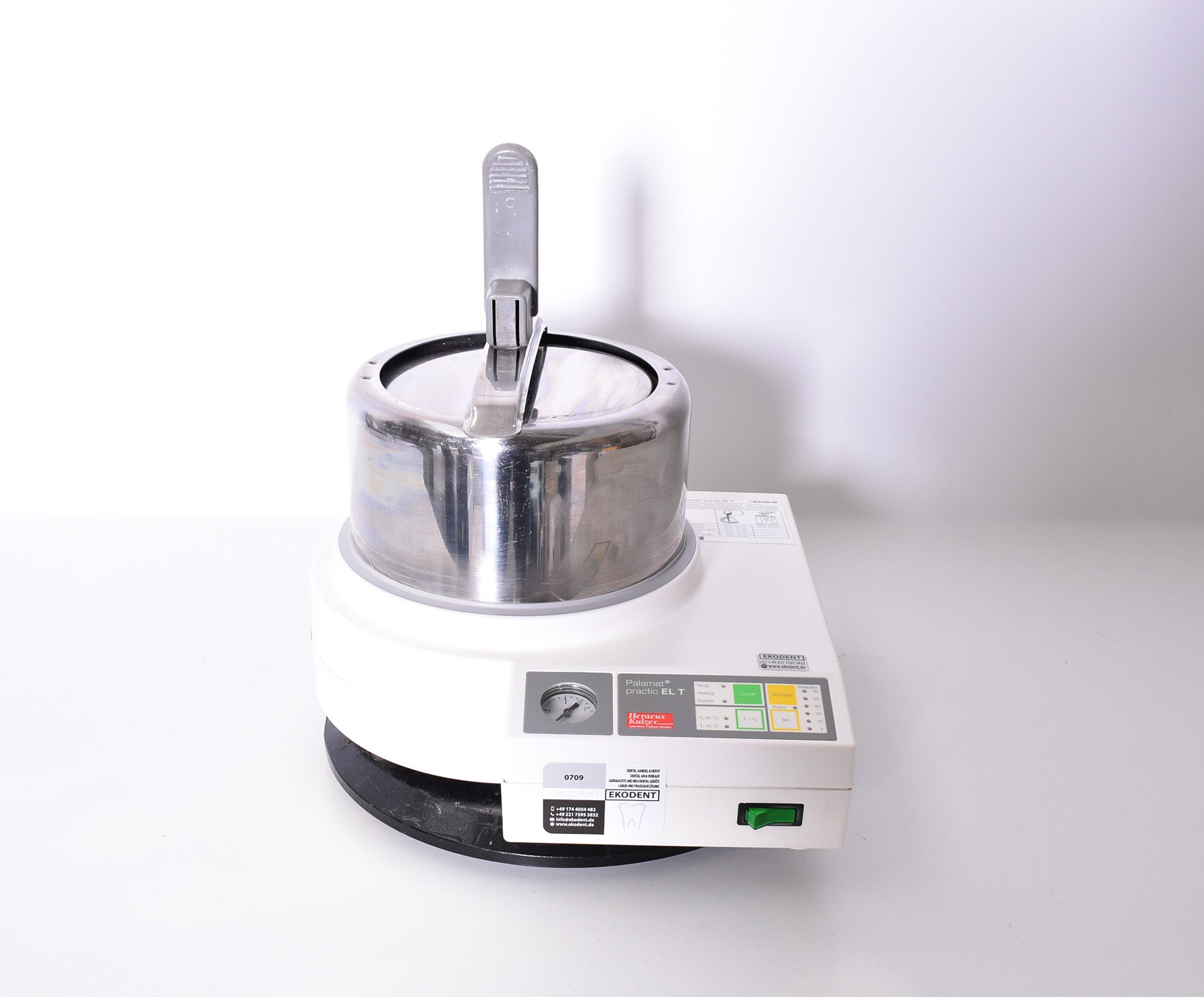 Heraeus Kulzer Palamat Practic EL-T Drucktopf, Druckpolymerisationsgerät für den Einsatz im Dentallabor und in der Zahntechnik. Das Gerät eignet sich zur Bearbeitung von Gipsmodellen. Zustand und Lieferumfang wie abgebildet.